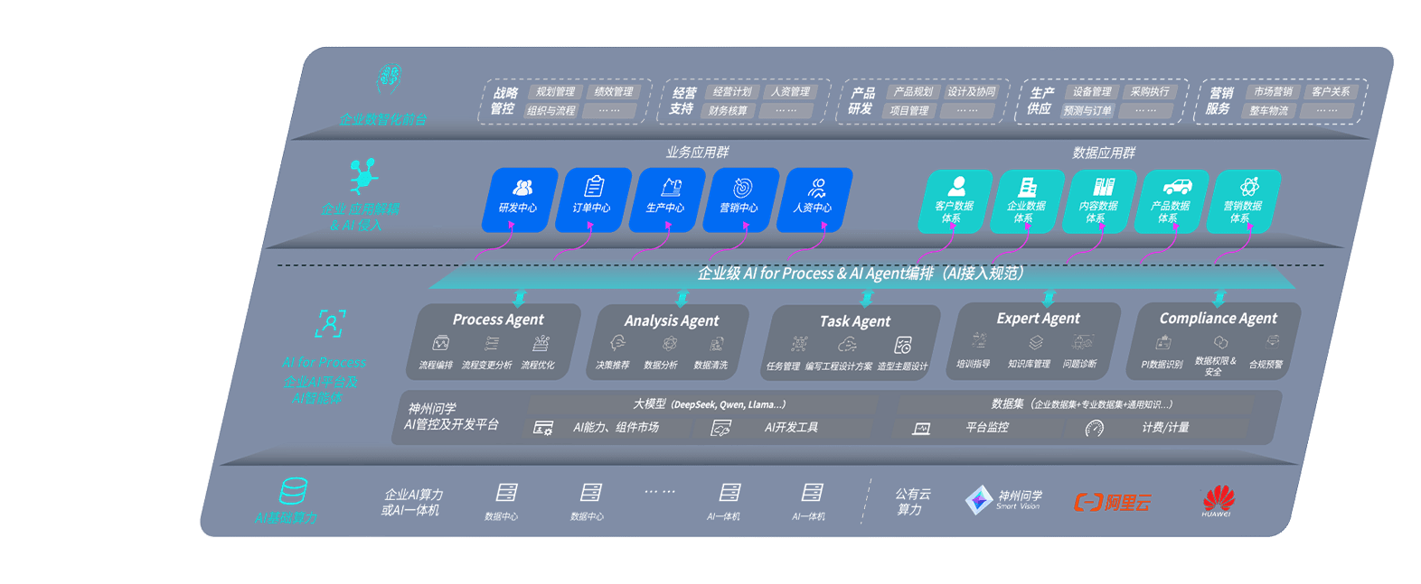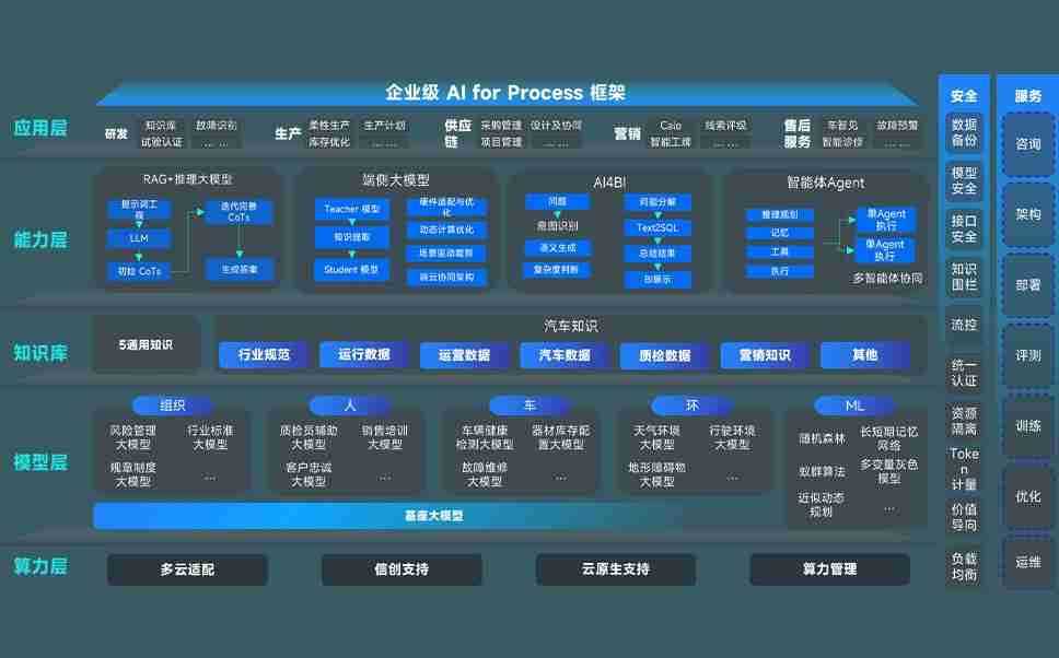 918博天娱乐问学智车解决方案是一套基于AI技术的汽车行业智能化系统,,覆盖从底层算力到顶层AI应用的全栈方案。。。。方案由算力层、、、、模型层和应用层组成:算力层,,,,方案支持多种一体机配置,,具备云端灵活部署、、、多云适配以及动态优化计算资源的能力;模型层,,,,918博天娱乐问学平台版提供了企业级AI应用一站式构建与管理平台,,,,支持基于后训练强化技术的汽车企业专属模型的训练、、评测和运营;应用层,,918博天娱乐问学DeepSeek版提供包括超级员工、、智能招采、、、、智能营销、、、智能客服、、、、AI for BI等一系列解决方案,,可助力汽车行业实现数字化转型,,,让管理更智能、、响应更敏捷。。